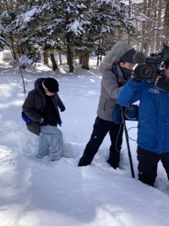ディレクターさんとカメラさん真剣に氷紋撮影中