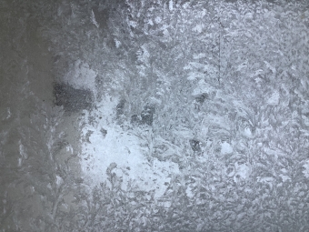 早朝6:30から火を落として氷紋撮影。外は−12℃