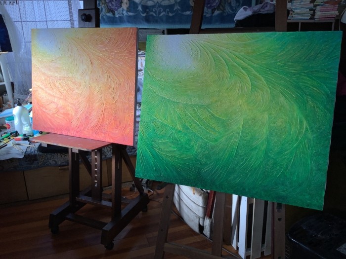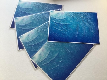 この絵は私だけの力ではない。ご恩を返したいとずっと願っていた想いに自然が応えてくれたかのように、手元には美しい氷紋の写真がたくさんある。まるでこれを使って大滝の素晴らしさを伝えなさいと言われるかのように。