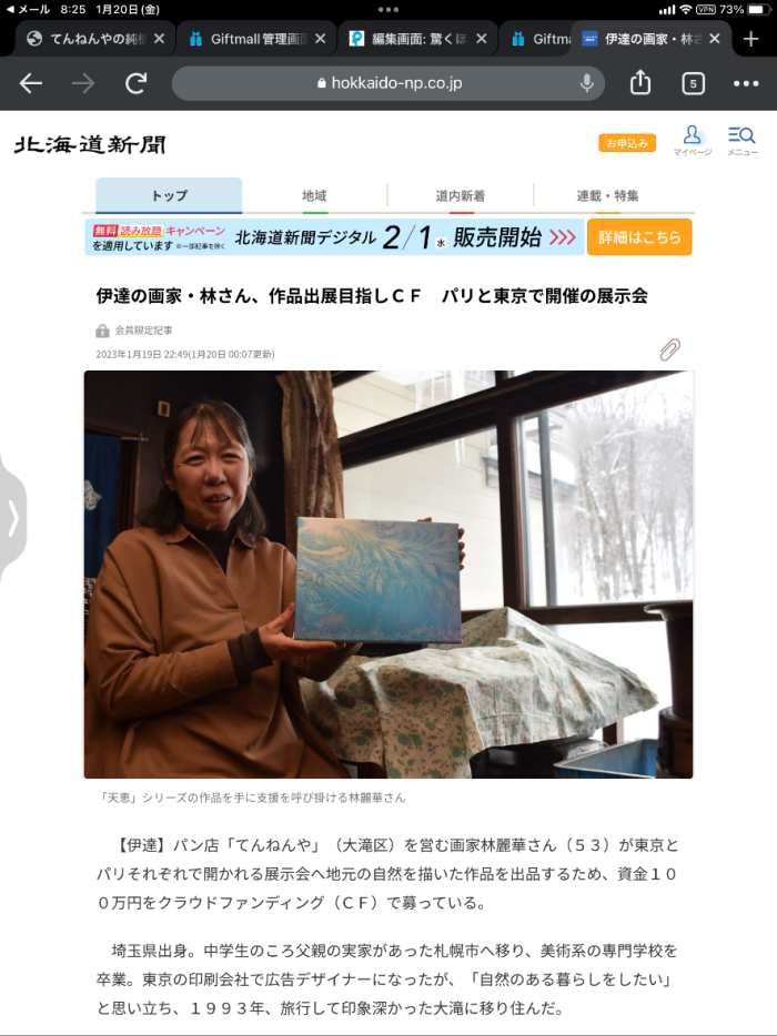 初めてのクラウドファンディング、しかも20年歴のパン屋とは畑違いのアートという興味ある人はあるけど日本ではまだまだ食ほど日常的ではないジャンルでの挑戦。同様のアートの部門を苦戦しているプロジェクトが沢山で達成している方が少ない。