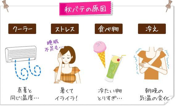 秋バテの原因は一言で言うと「暑くなった」ということですが,敢えてまとめると以下2つの点かと思います。
