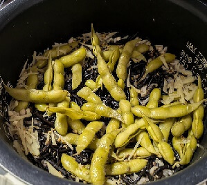鞘ごと炊く(中札内産)と枝豆の風味が美味しい・ヒジキもたっぷり