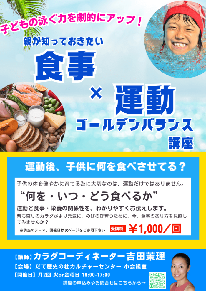 「子供の泳ぐ力を劇的アップ!親が知っておきたい食事×運動ゴールデンバランス講座」