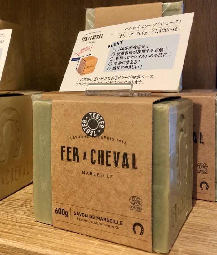 本物のマルセイユソープ入荷しました? 歯までも磨ける全身に使える固形石鹸です? 皮膚科医も推奨する石鹸なのでお肌が弱い方ぜひ試してみてください! 600g ¥1,400+税 65g×4 ¥1,200+税