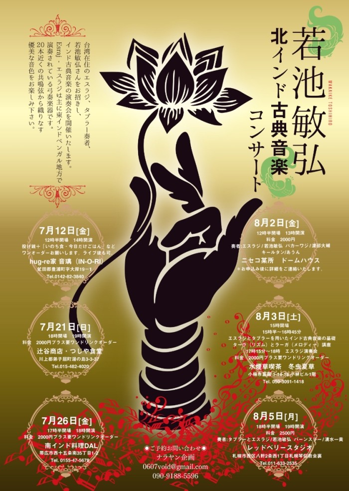 若池敏弘さんをお招きし、インド古典音楽のライヴ演奏を開催いたします。
