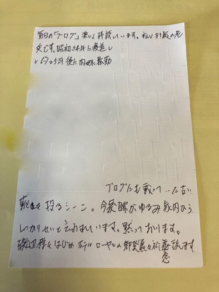 先日このブログを観てくださっている方からお手紙が届いたのでした。