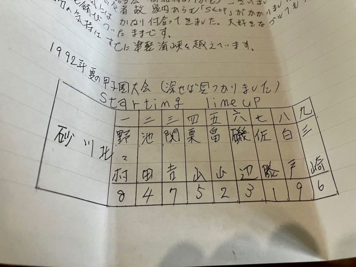 1992年 夏の甲子園のスタメンが表になって書かれていたのです!!!!
