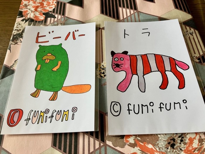 Tomokoさんにいただいた fumi fumi(葉っぱフミフミではありません)の2枚のハガキは部屋に飾らせていただこうと思います☆