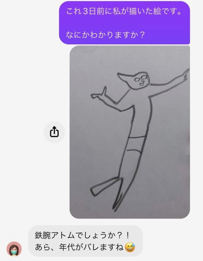 この絵をTomokoさんに見せて『何に見えますか?』って聞いたらね…