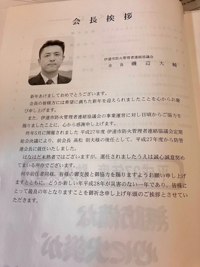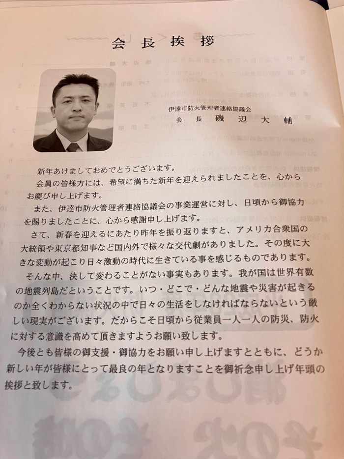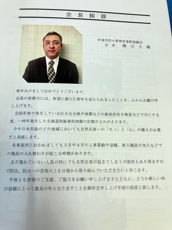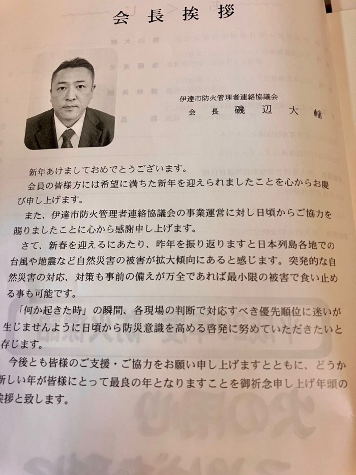 数日前の投稿で『伊達市防火管理者連絡協議会』の防災イベントで挨拶&表彰状授与をさせていただいたコトを書きました。