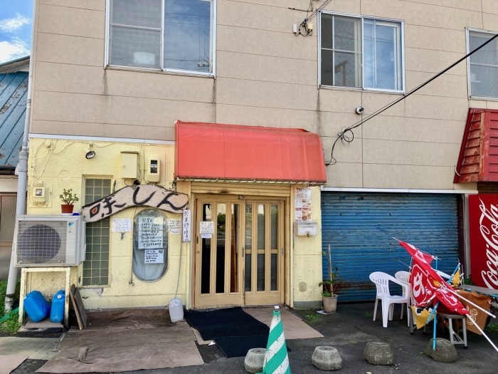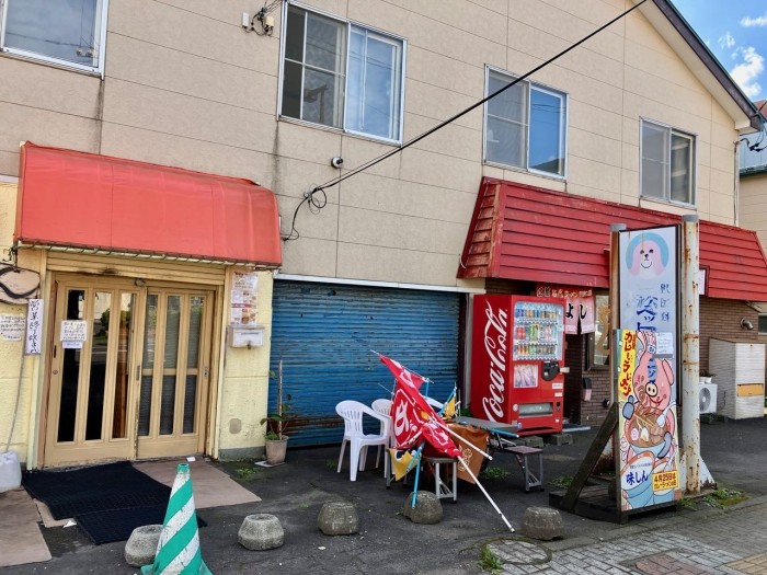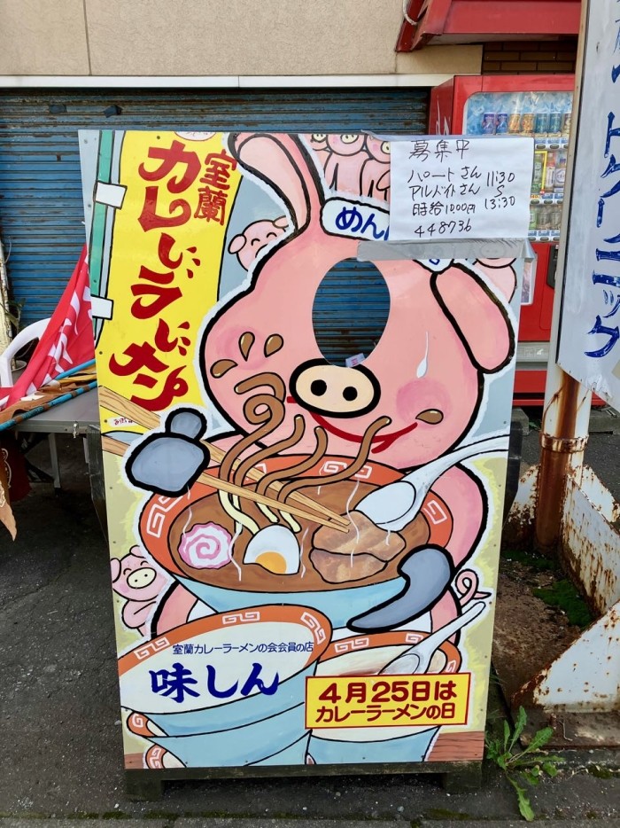 JR東室蘭駅前の通りでこんなラーメン屋さんの前を歩いていたのです。