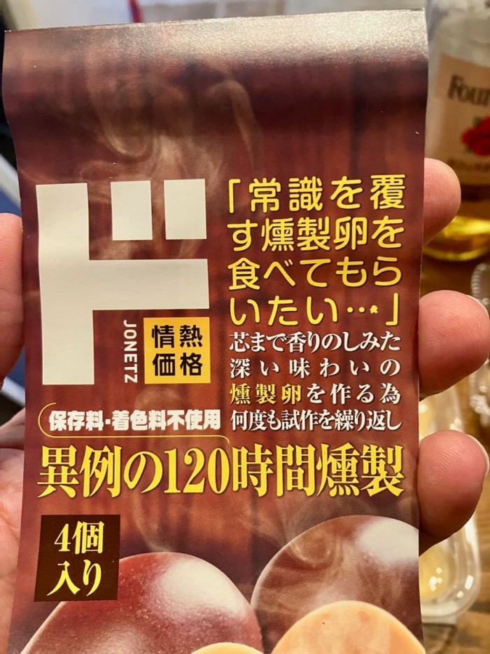 こっちの燻製卵が何時間燻製いていたのかはわかりませんが…