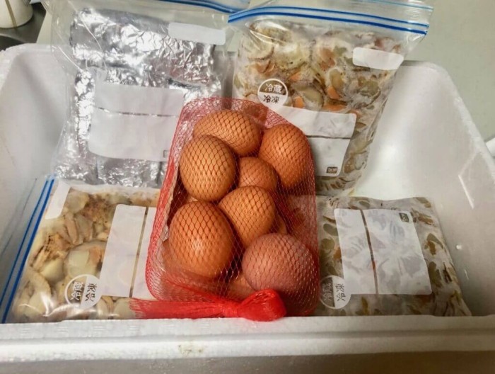 たくさんの帆立とか卵を届けに来てくれたのでした。
