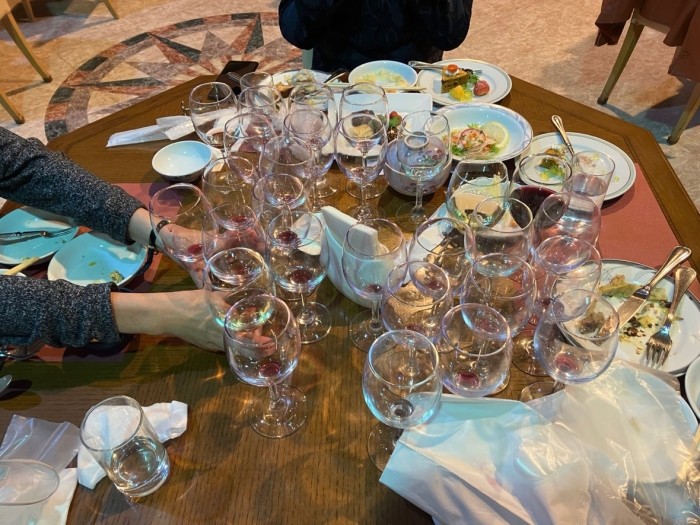 テーブルにこんなにワイングラスが集まるほどに新酒を堪能していただきました☆