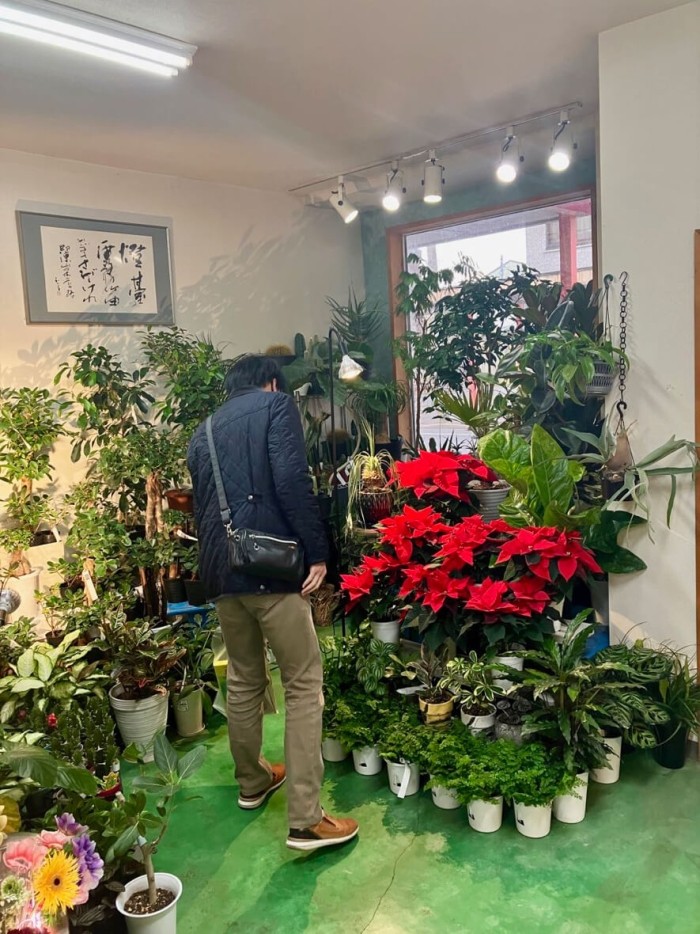 ここまでに本2冊とキーホルダーと昆虫図鑑を買ったあとにまさかのお花屋さんでポインセチアも買ったのでした。