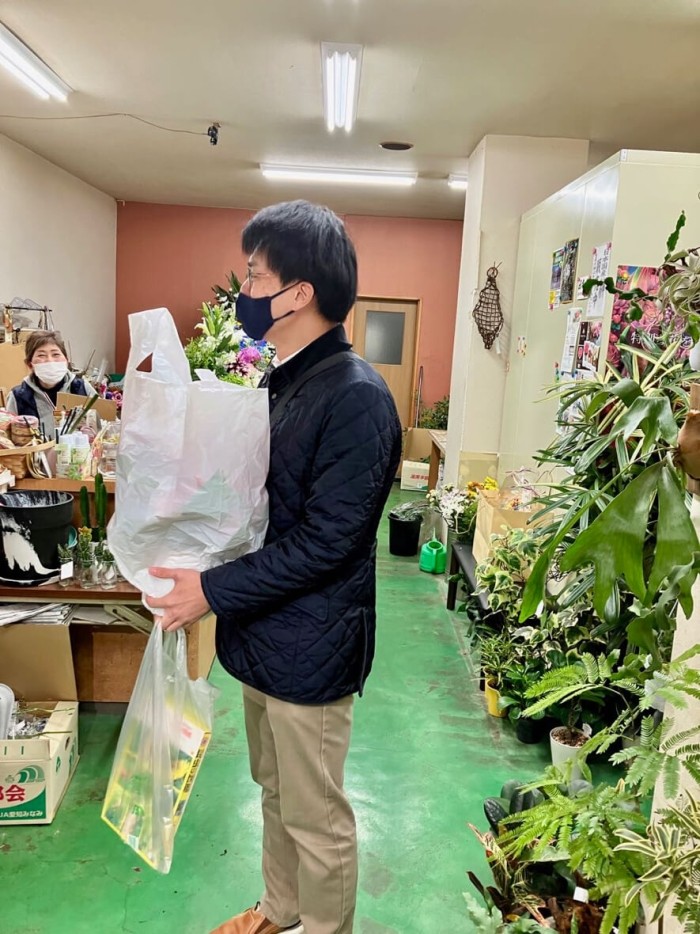 こののどかな商店街を2人で歩いていた時にお花屋さんがあったのです。