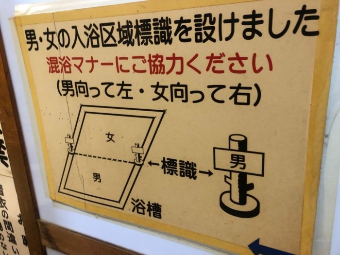 すでに先に温泉に入っていたおじさんが1人いただけで(しかもこのおじさんもラインぎりぎりを攻めていた)あとは僕らだけでした…