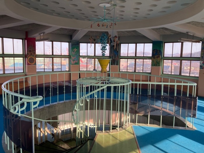 この廃校になった円形校舎は見学ができるので中にこうやって入れるのでした。