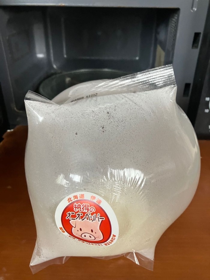 これ冷凍されていたので電子レンジでチンして食べようとしたのです。