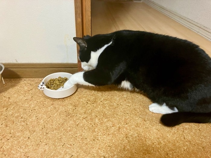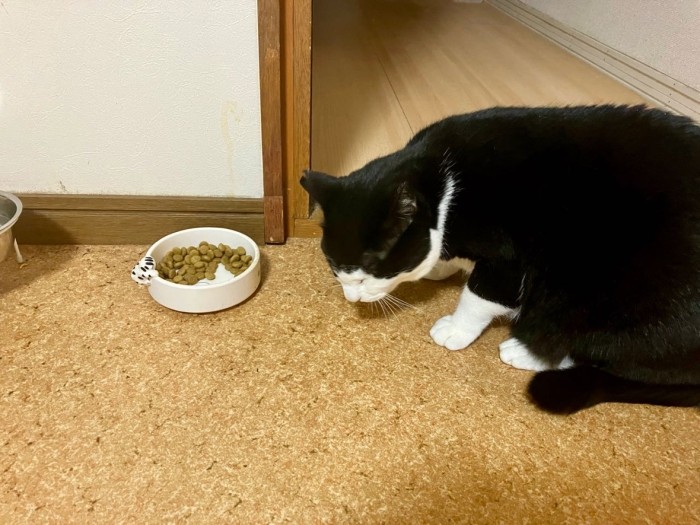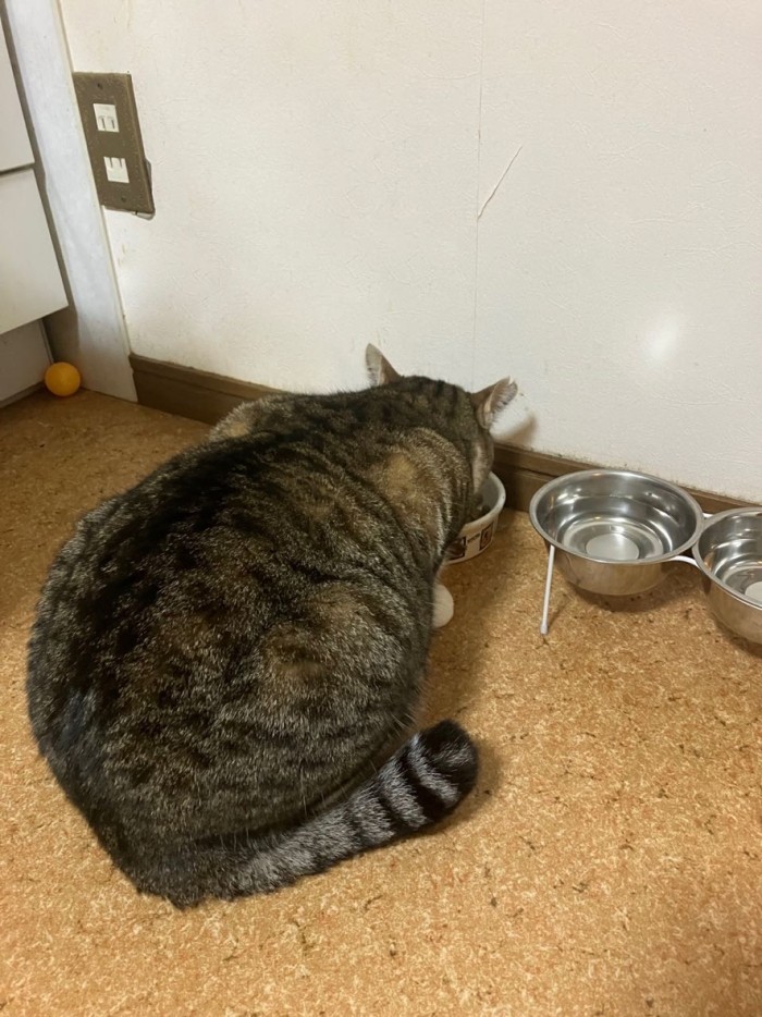 普通はネコってエサを食べる時の正しい姿勢はこうですよね?