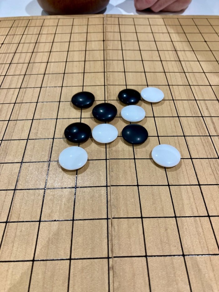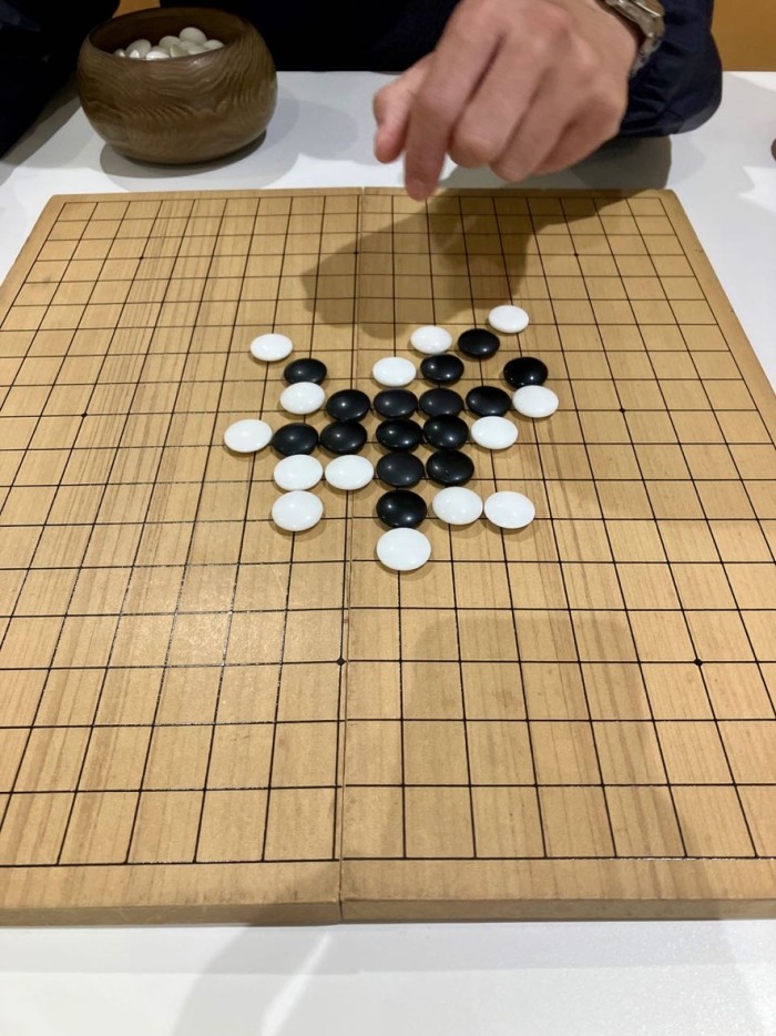 そしたら奥の方に囲碁ができるスペースがあったので竹内さんと五目並べをしました。