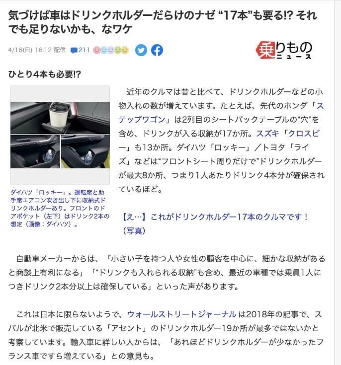 1台の車に17個もドリンクホルダーがあったりするという記事なのです!!