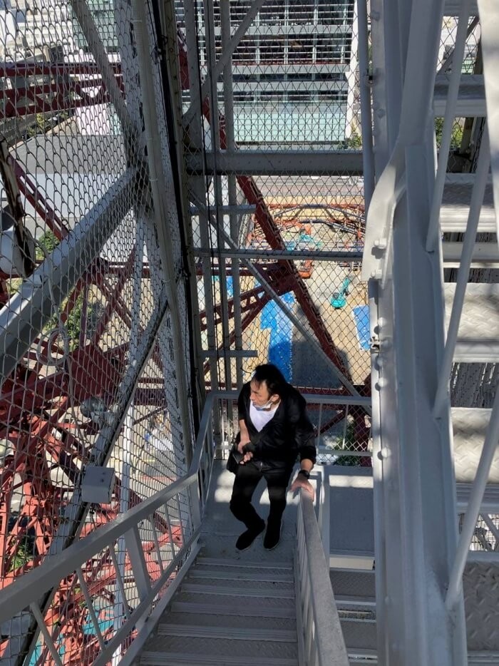 何も聞かされずに呼ばれて階段でテレビ塔を登る予想をしていなかった雨谷くん☆