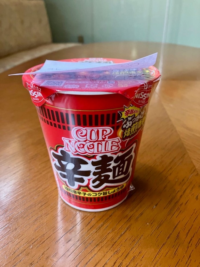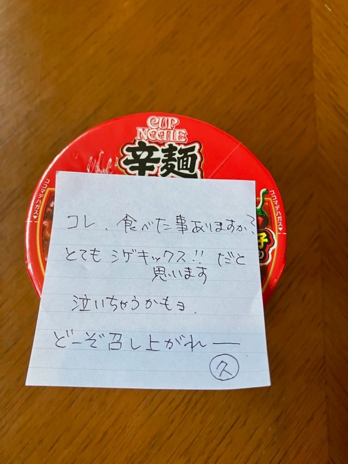 美味そうな辛いカップヌードルなのですがその上に貼ってあったメモ