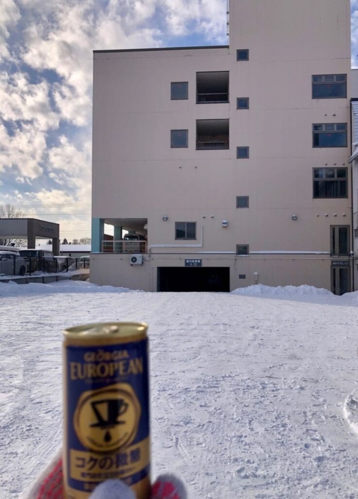ホテルの雪かきをし終えた後の缶コーヒー☆