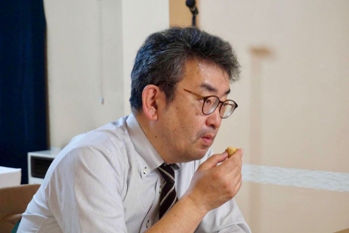 みんなの感想を聞いて余韻に浸りながら、おまんじゅうを食べている片桐会長