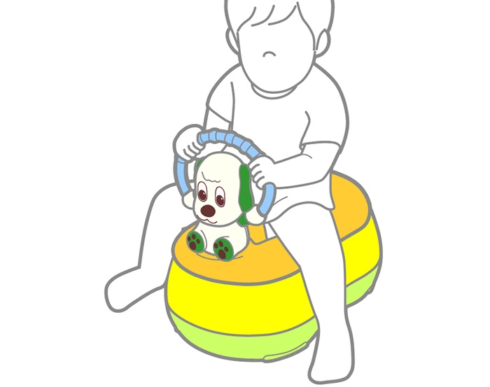 おトイレの練習をする「おまる」にまたがっているみたいじゃないかぁ…
