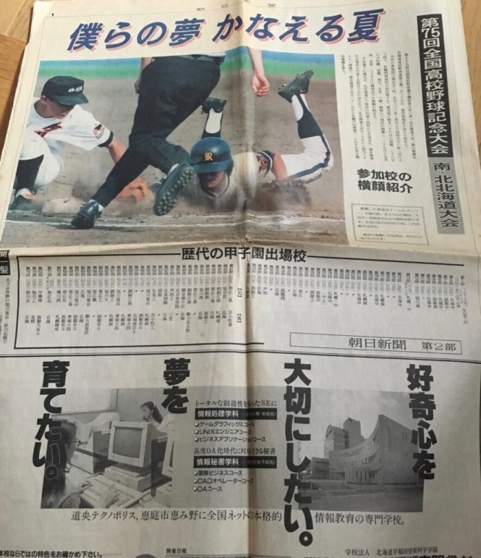これ高校を卒業してホテルマンになっているのにまさかの朝日新聞の一面にカラーで登場だったのです!!!