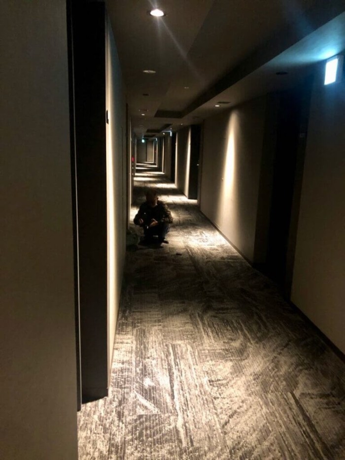 真夜中のホテルの廊下で壺を落として割ってるんです…