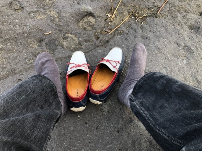 別のREGALシューズもどっぷり川に沈んでしまってガックシ…