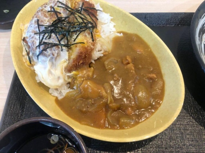 蕎麦屋さんの「ゆで太郎」の禁じ手的なカツカレーがあるのです。