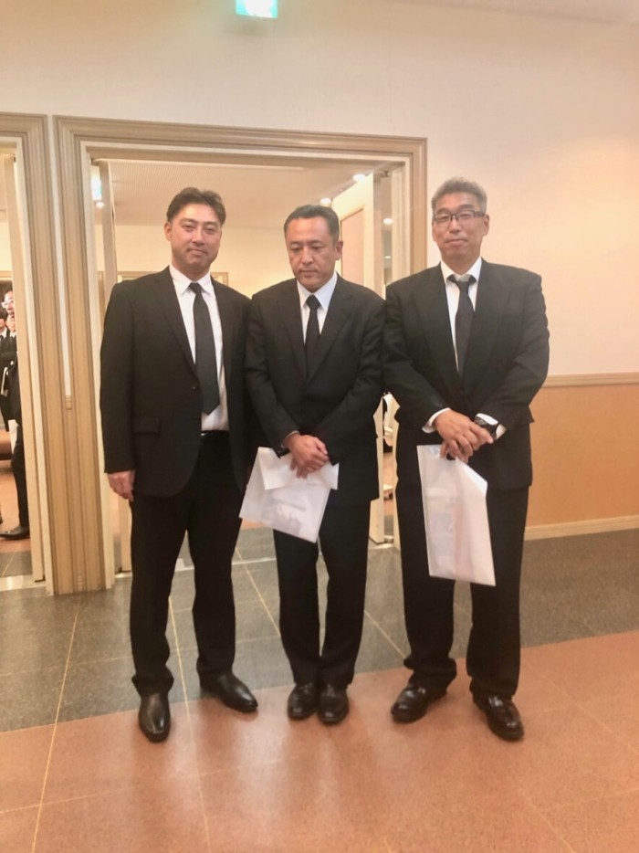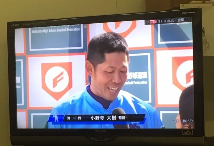 スーツを着ているのは現在の滝川西高校の野球部監督の小野寺氏です。