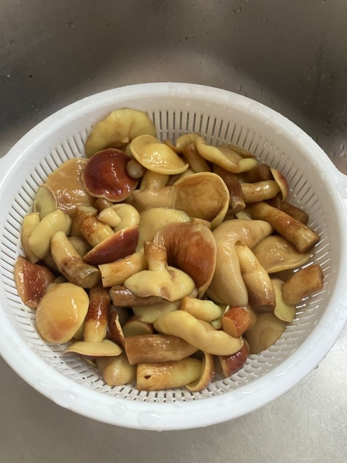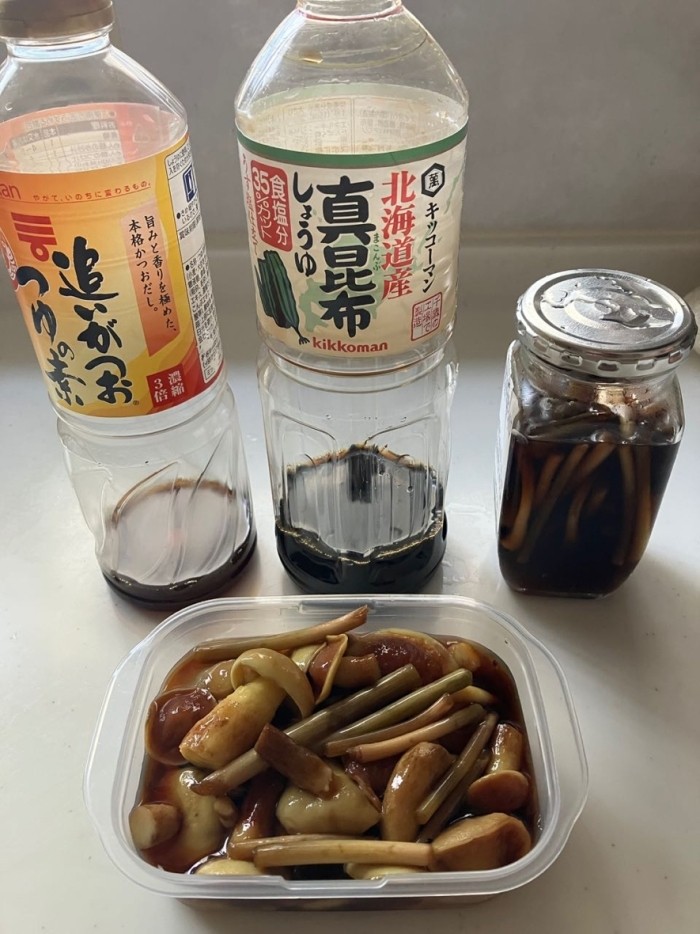 醤油漬けの行者ニンニクとめんつゆと昆布醤油を入れて漬け込んでから10日間冷蔵庫で寝かせたのです。