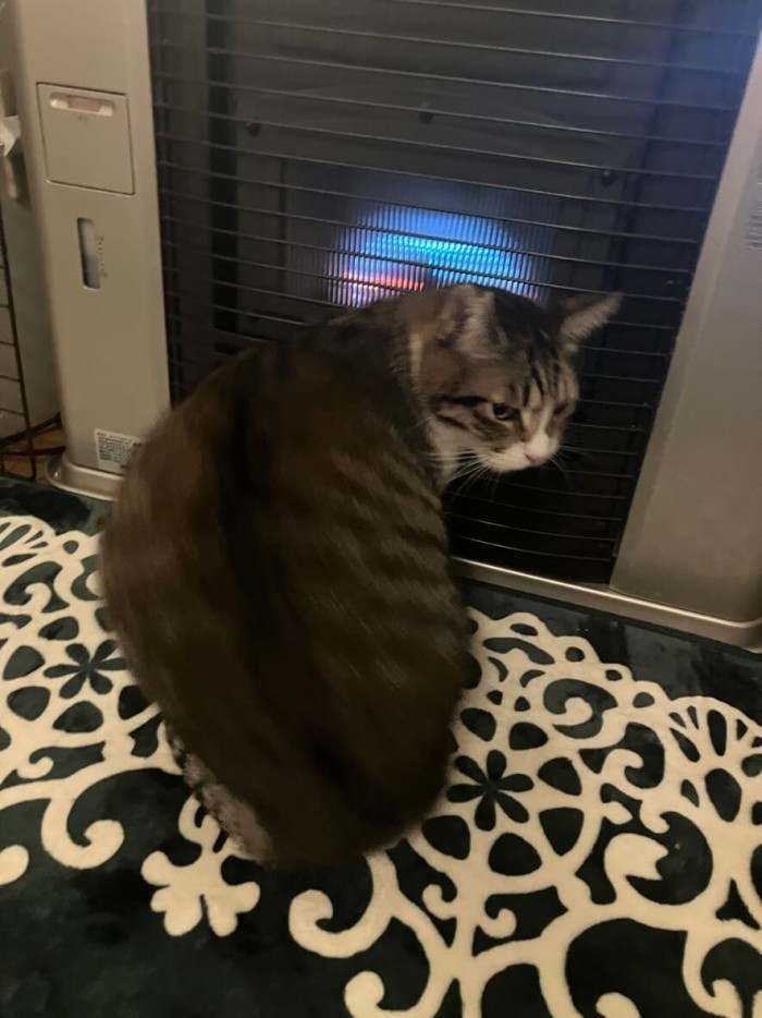 相変わらずぬくぬくと暮らしているのですが私が夜遅くに帰宅してリビングのストーブのスイッチを入れたら…