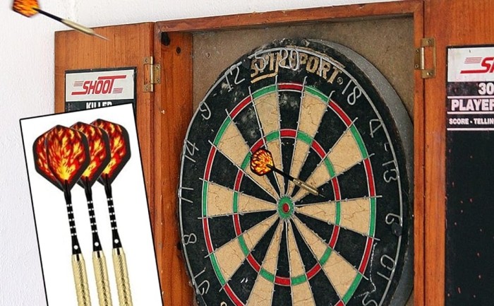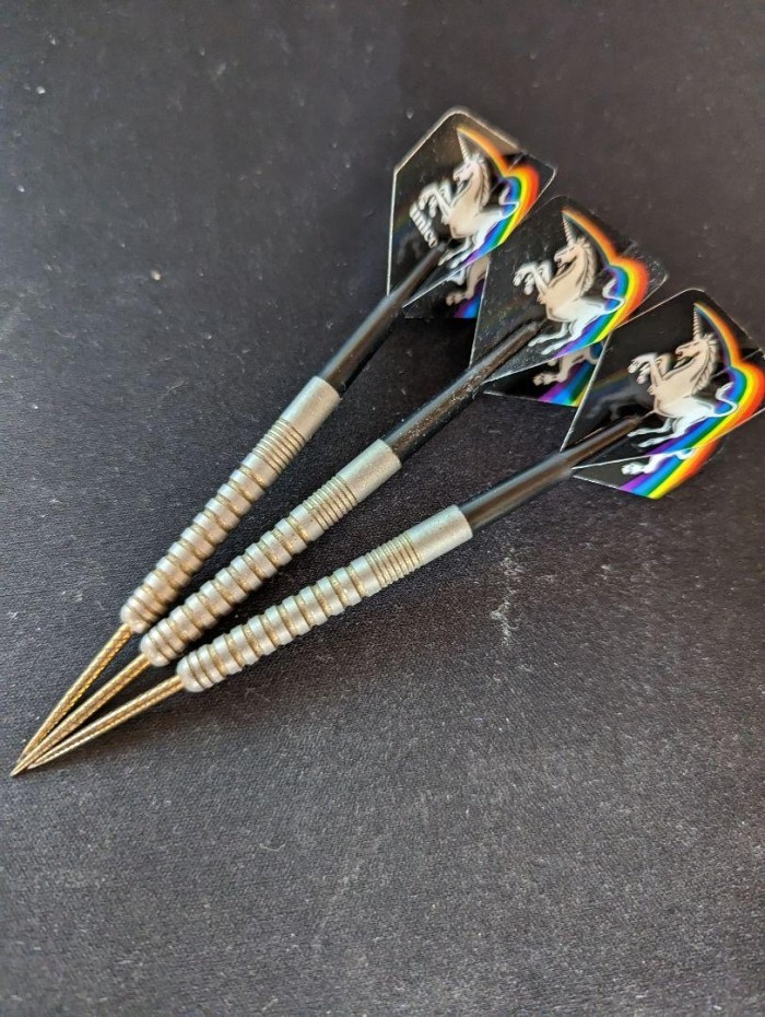 電子版の今のタイプじゃなくて昔ながらの重い矢を放つダーツです。
