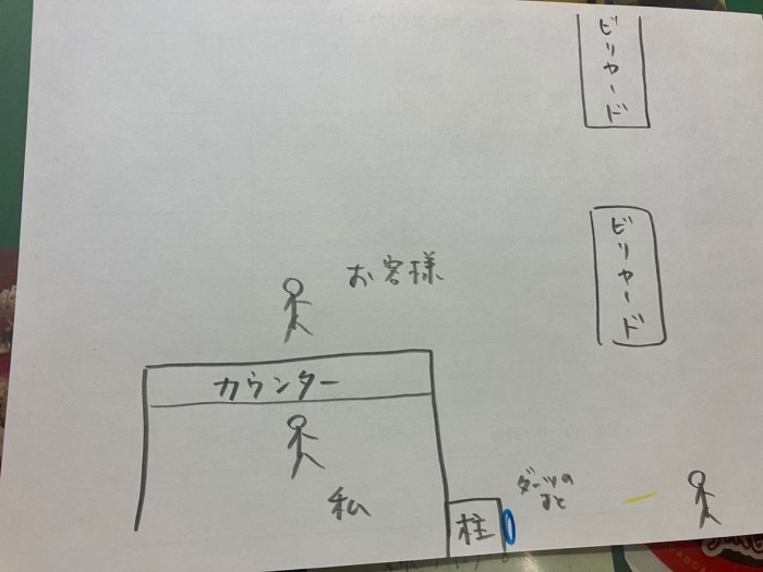 ビリヤードを待つお客様が暇つぶし用に設置してあったダーツをしていたのです。