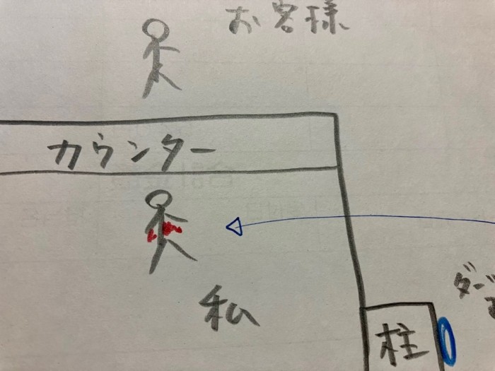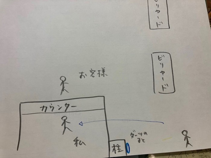 若い男性が思いっきり放ったダーツの矢が接客中の私のお腹に思いっきり刺さったのです!!!!!!