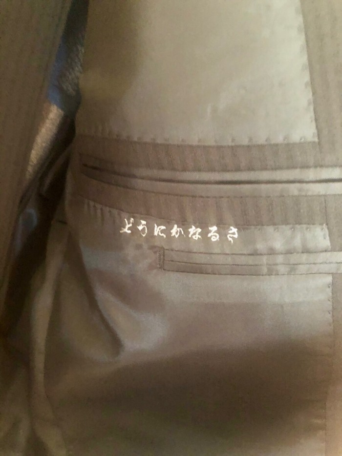 私はその時々の気分で今まで様々な言葉をスーツに刻んできました。