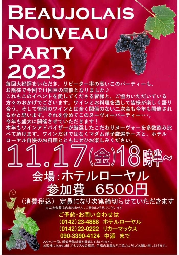 ボージョレヌーヴォー パーティー2023