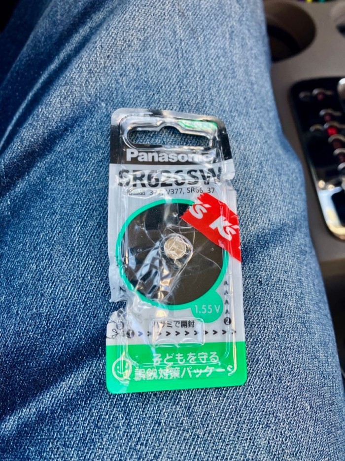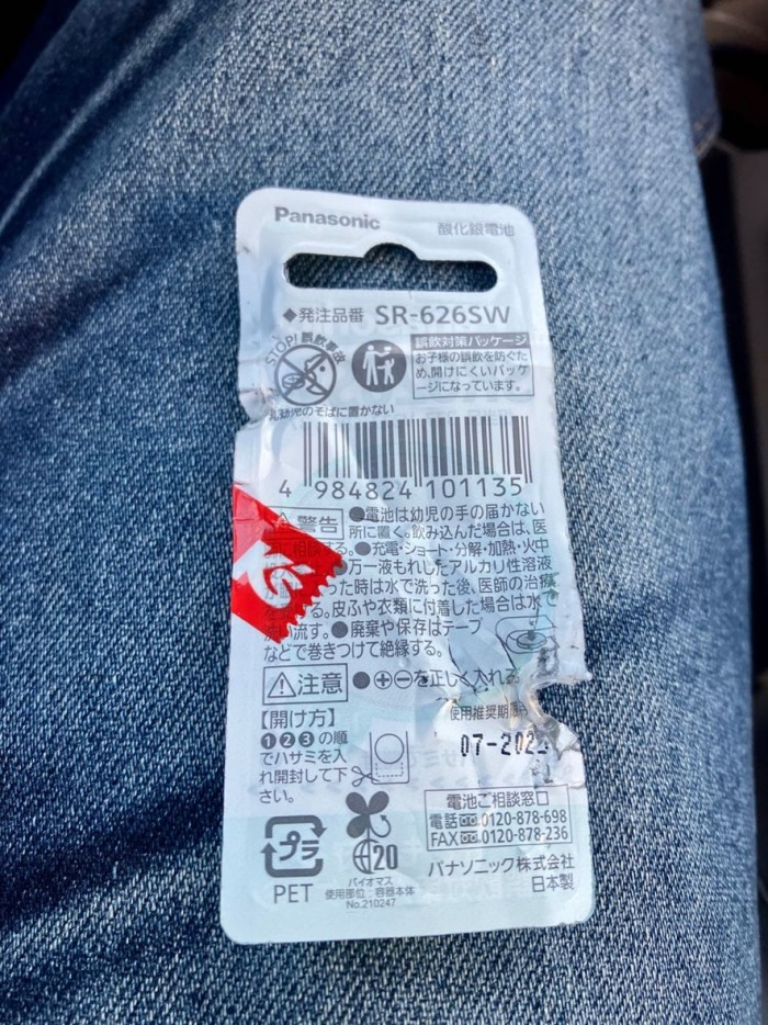 でも車の中の時計の電池なので家電量販店のパーキングで交換しちゃいたかったので歯でちぎって開けちゃおうとしたんですよね
