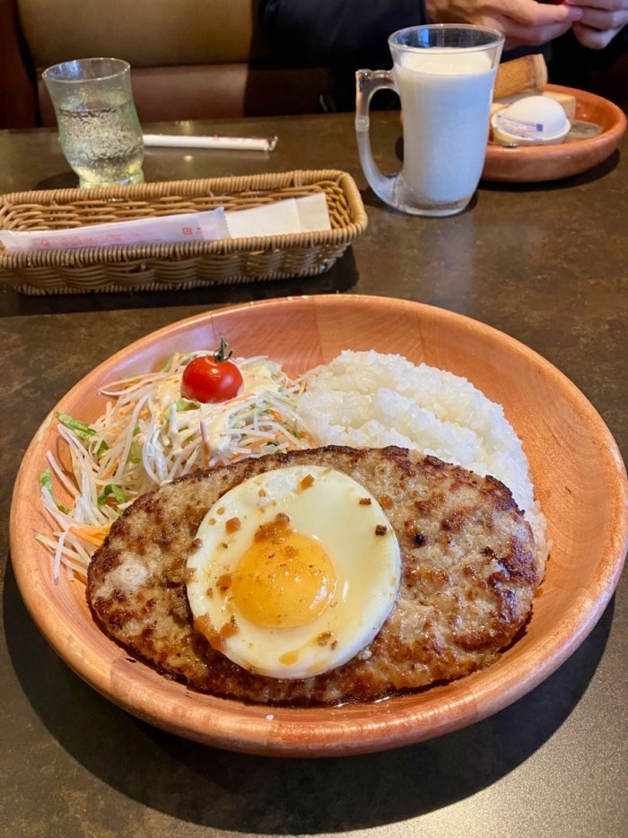 朝の時間なので100gの小さいサイズとか通常サイズの150gとかのハンバーグもあったのですが…
