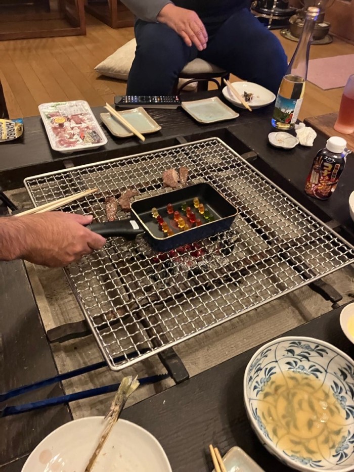 大人はグミのハリボーを溶かして高級なシャシンマスカットを串に刺して付けながら食べないで、普通に冷やしてそのまま食べるだろうよ…と