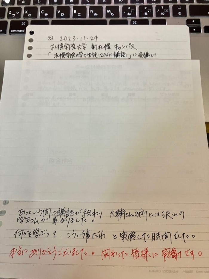 ちゃんと僕の講演を聞いた感想のレポートを送って来てくれたのです!!!