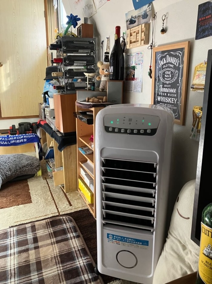 部屋に窓が奥に1箇所しかなくて尋常じゃないくらい暑いから冷風機を買ったのでした。