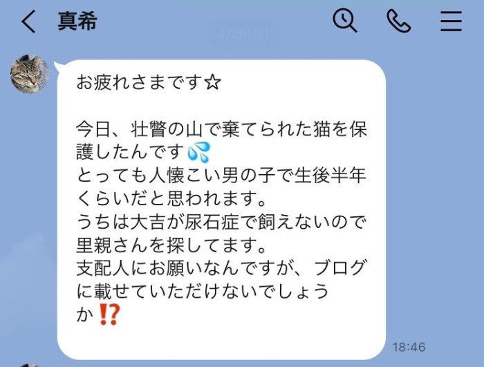 どなたか真希さんが保護しているネコちゃんを飼ってくださる方はいらっしゃいませんでしょうか??