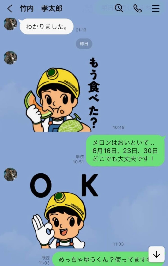 何度か夕張に連れて行かれたコトがあるのですがLINEでも夕張感を出してくるのです。